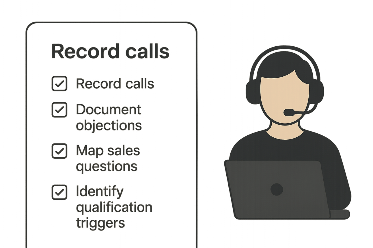 The first step is to systematically extract the sales expertise that currently exists only in your head or your top performers' heads.